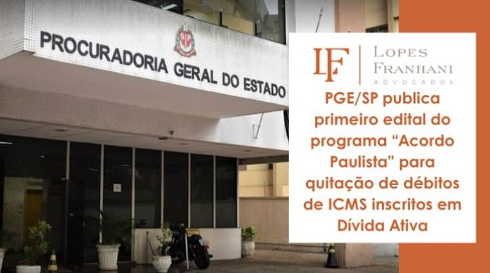 PGE/SP publica primeiro edital do programa “Acordo Paulista” para quitação de débitos de ICMS incritos na Divida Ativa