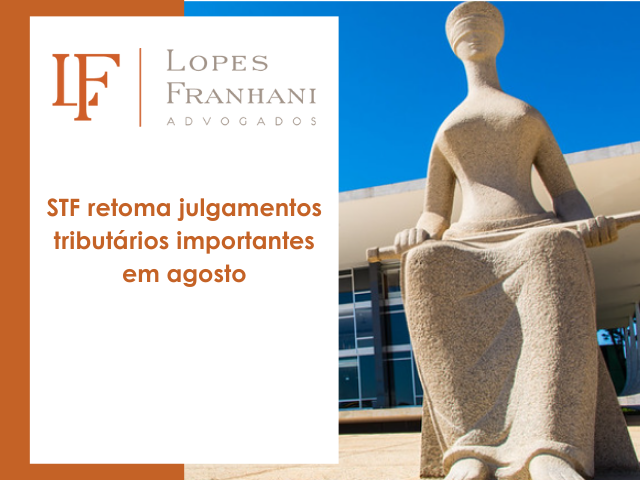 Neste início de agosto, o Plenário do STF poderá definir temas tributários importantes, com destaque para: • Julgamento presencial do tema nº 914, referente à constitucionalidade da Contribuição de Intervenção do Domínio Eletrônico (CIDE-Royalties). O placar está 4 a 2 em favor da União e poderá ser retomado na próxima semana, em face do pedido de vistas do Min. Nunes Marques. • Encerramento do julgamento virtual do tema nº 1266, envolvendo a modulação de efeitos para aplicação da anterioridade anual e nonagesimal nas cobranças de ICMS-DIFAL em relação a operações interestaduais destinadas a consumidores finais não contribuintes. Até o momento, o placar é de 5 a 2 em favor da modulação de efeitos. • Encerramento do julgamento virtual dos Embargos de Declaração do tema nº 985, envolvendo a confirmação da modulação de efeitos para a Incidência da contribuição previdenciária patronal sobre o terço constitucional de férias. O placar está 5 a 0 pela manutenção da modulação. #stf#julgamentostf#direitotributário#plenáriostf#advocaciatributária#lopesfranhaniadvogados